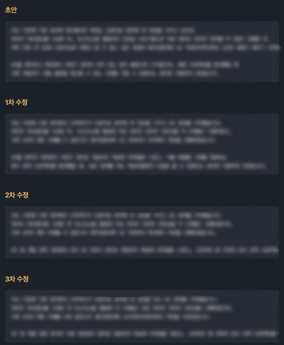 내가 선택한 방식은 1차 초벌 번역 -> 모르는 단어 찾기 -> 2차 수정 -> 마지막 전체 흐름 확인하며 3차 수정 정도의 프로세스를 반복하는 것이었다.